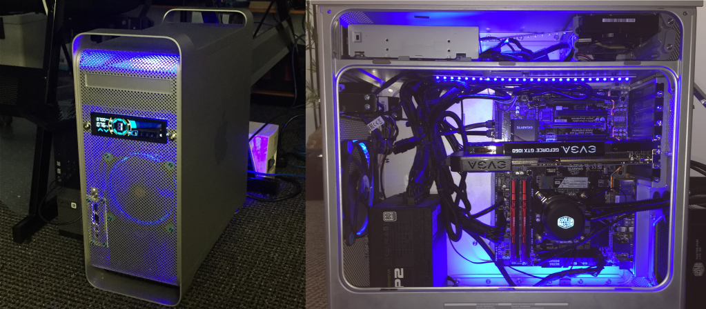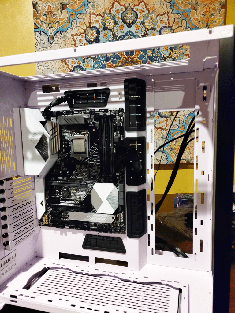But despite most of the components ready to be used in their current configuration my wife wanted her PC to be a little… different. Okay, a LOT different, but since she’s not a die-hard enthusiast her desires weren’t so much in the specs but in the aesthetics. As such, the first thing to go was the chassis: RuRu had a heavily modded PowerMac G5 chassis–a relic from my early days at that job–and my wife wanted something more elegant than the soft-grey aluminum body with a big ‘ol apple on the side. No, she wanted a Lian Li 011D chassis in white, but due to stock shortages and prices she settled on the 011D XL ROG chassis in white. We salvaged the GPU and the PSU, but instead of the metallic red RAM she opted for 2×16 GB sticks of G.Skill’s Trident Z Royal DDR4. To continue the theme she wanted a white motherboard instead of the black and red one so we bought an Asus Prime Z390-A in white.