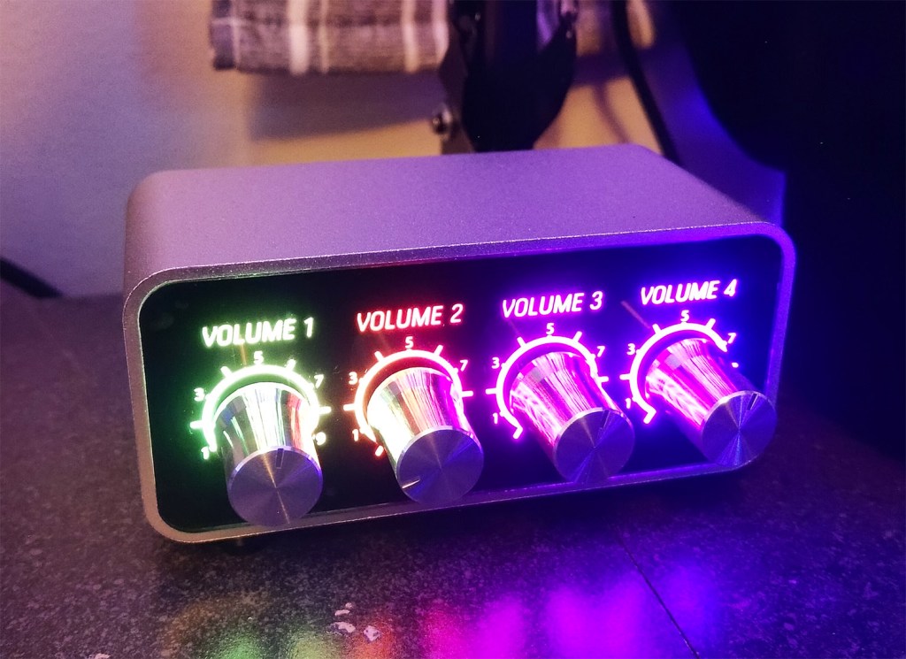 Finally, nestled deep in a Reddit thread about someone who built their own Deej-controlled mixer I found my answer: PCPanel. With its physical knobs/sliders, single software solution and ability to retain its settings this device appeared to be exactly what I was looking for. And apparently what everyone else was looking for because the company was sold out of all models!