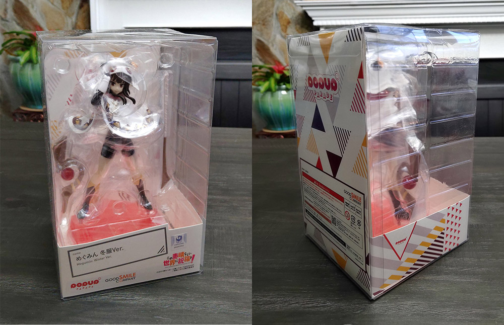 This particular figure features Megumin in her “winter outfit” as seen in KonoSuba Season 1 Episode 7: “A Second Death in This Freezing Season!” A skin-tight, black thermal suit is topped with a poncho, mittens, boots, and a winterized version of her iconic hat. I pre-ordered the figure from my usual supplier, AmiAmi, in January of 2021 for ¥3300 with ¥1400 shipping, coming to a total of ¥4700 ($42.66 USD). The figure shipped in June 2021 and was received an about two weeks, as is the norm for AmiAmi’s “Air Small Packet” shipping.
