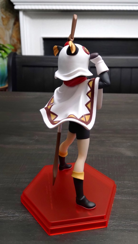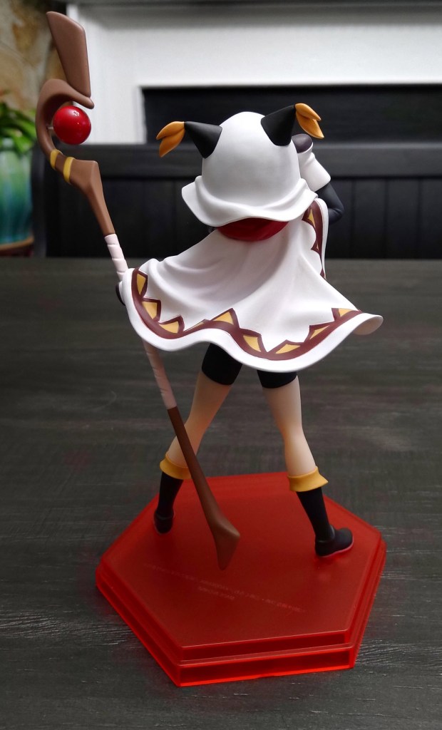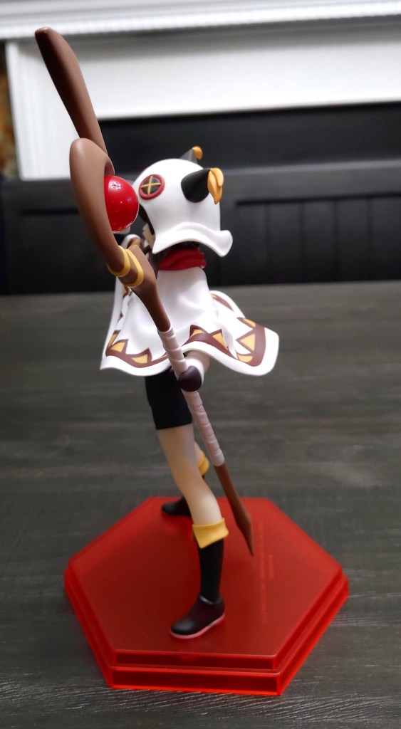 The base is a point of contention for me, as it is with all Pop Up Parade figures. The prototypes are always shown with low-profile, clear circular bases which would really go a long way towards making these cheaper figures appear more “premium”, but when released they’re packaged with much cheaper looking colored plastic bases. Megumin’s is a translucent red with a tiering feature which is admittedly better than an opaque, solid block of neon red, but given the theme of the figure I would’ve hoped to see white base with a little snowy texturing around her feet.